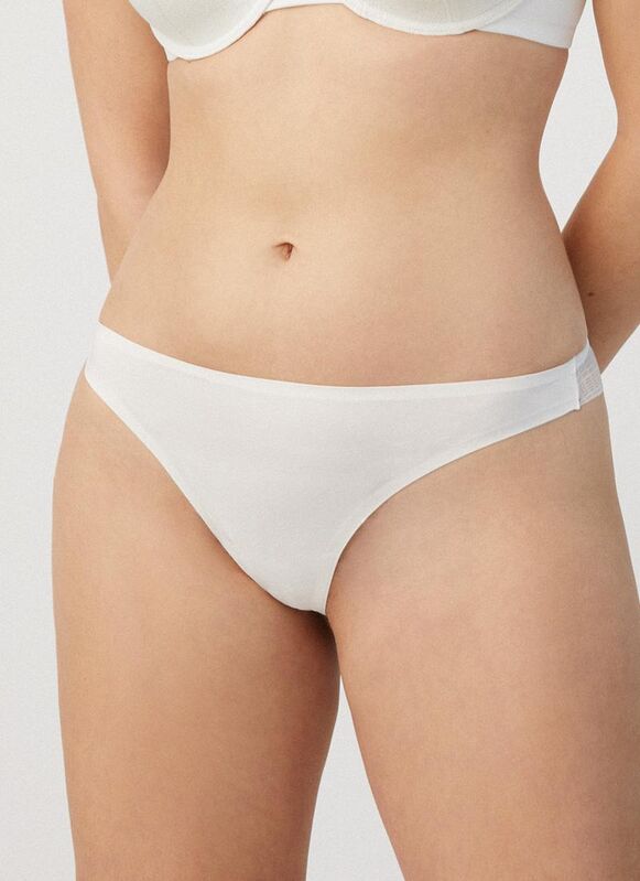 Braga brasileña de encaje de la Colección Special You. Prenda femenina y sensual. La invisibilidad de la fantasía floral en encaje se combina con la suave opacidad del tejido de microfibra. Elásticas y cómodas, su delicado diseño fusiona calidad y elegancia. 90% Poliamida, 10% Elastano
