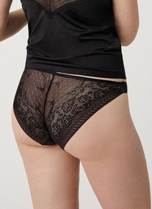 Braga mini de encaje de la Colección Special You. Prenda femenina y sensual. La invisibilidad de la fantasía floral en encaje se combina con la suave opacidad del tejido de microfibra. Elásticas y cómodas, su delicado diseño fusiona calidad y elegancia. 90% Poliamida, 10% Elastano