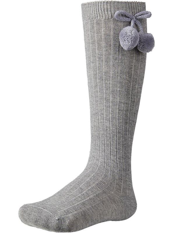 Calcetín infantil largo.Tejido con textura y decorado con bolas en el lateral.Un accesorio especial para los outfits más cuidados de los peques de la casa.Disponibles en variedad de colores. v