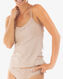 Camiseta Avet de algodón con tirantes finos regulables. Detalle del escote acabado con encaje floral. Su tejido es de calidad y muy cómodo. Diseñada y fabricada en España. 90% Algodón - 10% Lycra