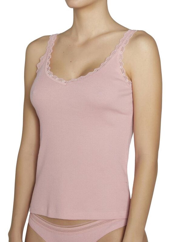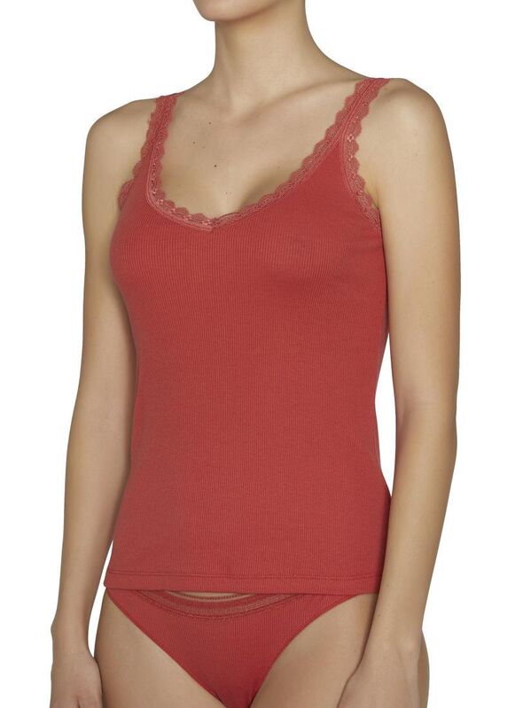 Intimates Collection. Camiseta de tirantes. Acabados enriquecidos con blonda en escote y tirantes. Tejidas en Cotton Nature, las fibras naturales de este material aportan suavidad y adaptabilidad. Sensualidad y diseño dan forma a la nueva lencería para el día a día. Crea tu twin set con una braguita a juego de la colección. 100% Algodón