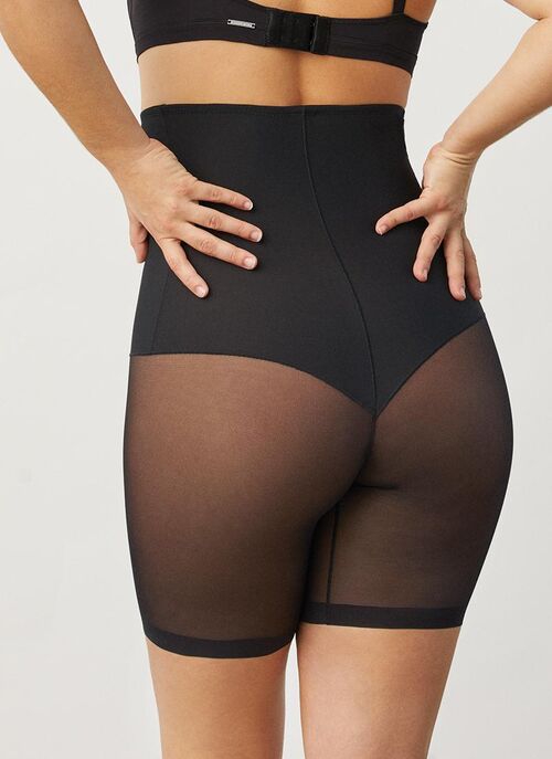 Faja alta reductora de control fuerte sobre abdomen alto, medio y bajo, cintura y espalda, caderas y muslos. Incorpora pieza central de refuerzo para la consecución de efecto vientre plano. Banda de silicona en la base del busto para asegurar su adaptabilidad. Faja clásica combinada con tejido invisible con corte láser en los muslos y glúteos con efecto tanga. Costuras ultraplanas que lo hacen imperceptible bajo la ropa. La comodidad y sujeción de una faja y la sofisticación de un tanga, todo en una misma prenda. 73% Poliamida, 27% Elastano