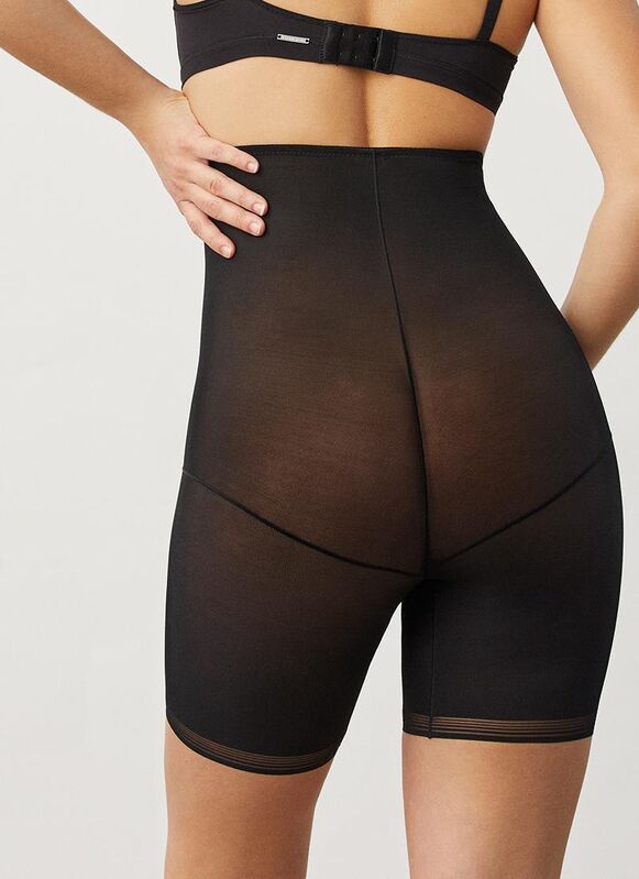 Faja alta reductora de control fuerte sobre abdomen alto, medio y bajo, cintura y espalda, caderas y muslos. Incorpora pieza central de refuerzo para la consecución de efecto vientre plano. Banda de silicona en la base del busto para asegurar su adaptabilidad. Faja clásica combinada con tejido elástico con corte láser en los muslos y glúteos con efecto tanga. Costuras ultraplanas que lo hacen imperceptible bajo la ropa. La comodidad y sujeción de una faja y la sofisticación de un tanga, todo en una misma prenda. 70% Poliamida, 30% Elastano