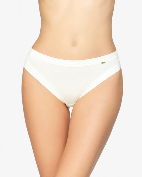 Braguita bikini de microfibra de la colección Avet Gold, nuestra colección más premium. La cintura y los camales están acabados con bandas planas de microfibra, por lo que no oprime y ofrece una suavidad y comodidad máximas. Detalle de logo en pieza dorada. Diseñada y fabricada en España. 90% Poliamida 10% Lycra