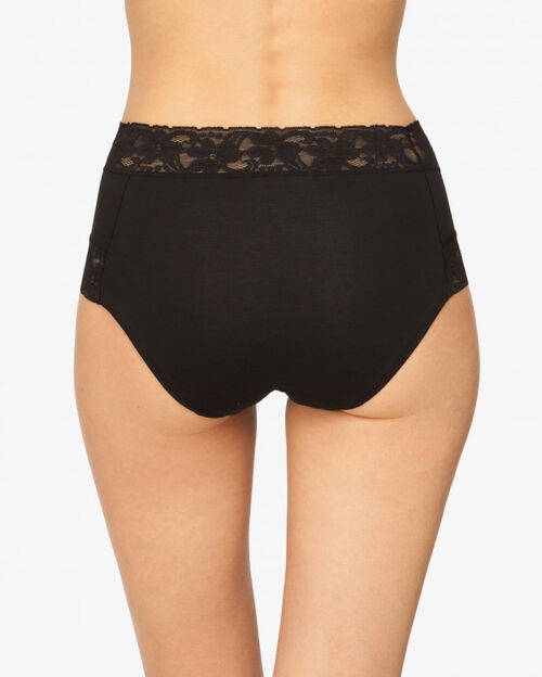 Braguita midi Avet de algodón. Es elástica y se adapta con facilidad al cuerpo. Acabado en la cintura y camales con puntilla ancha, dándole a la braguita un estilo único y elegante, con una forma que siempre favorece al cuerpo. Diseñada y fabricada en España. 90% Algodón-10% Lycra