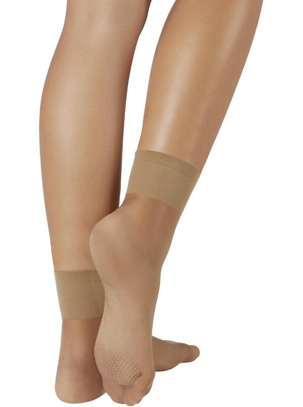 Tobillero frío especial 10 Deniers. Su acabado antideslizante en la suela asegura un ajuste perfecto. Gracias a las propiedades de sus micro-partículas activas le proporcionan una permanente sensación de frescura y bienestar. 88% Poliamida, 12% Elastano