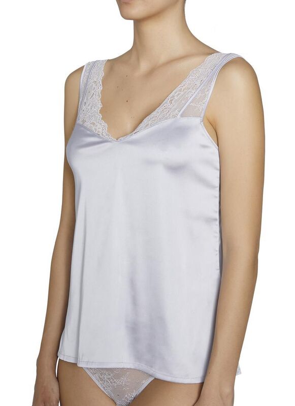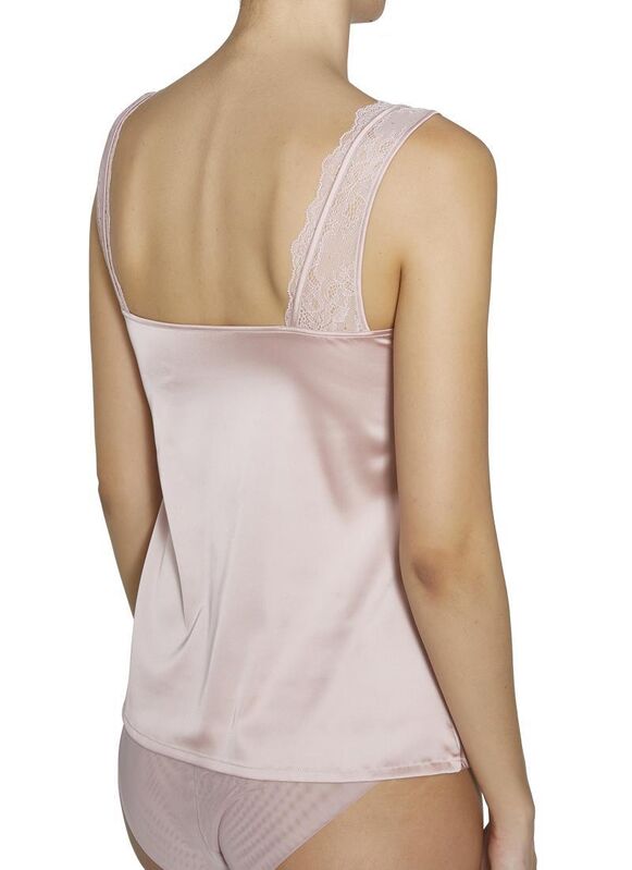 Intimates Collection. Top tirante fino totalmente especial. Diseño de estilo lencero que combina tejido satén con detalles de encaje en la zona del escote y tirantes. Disponibles en 2 tonalidades de tendencia, rosa y gris. Crea tu twin set con la braguita a juego de la colección. 92% Poliéster, 8% Elastano